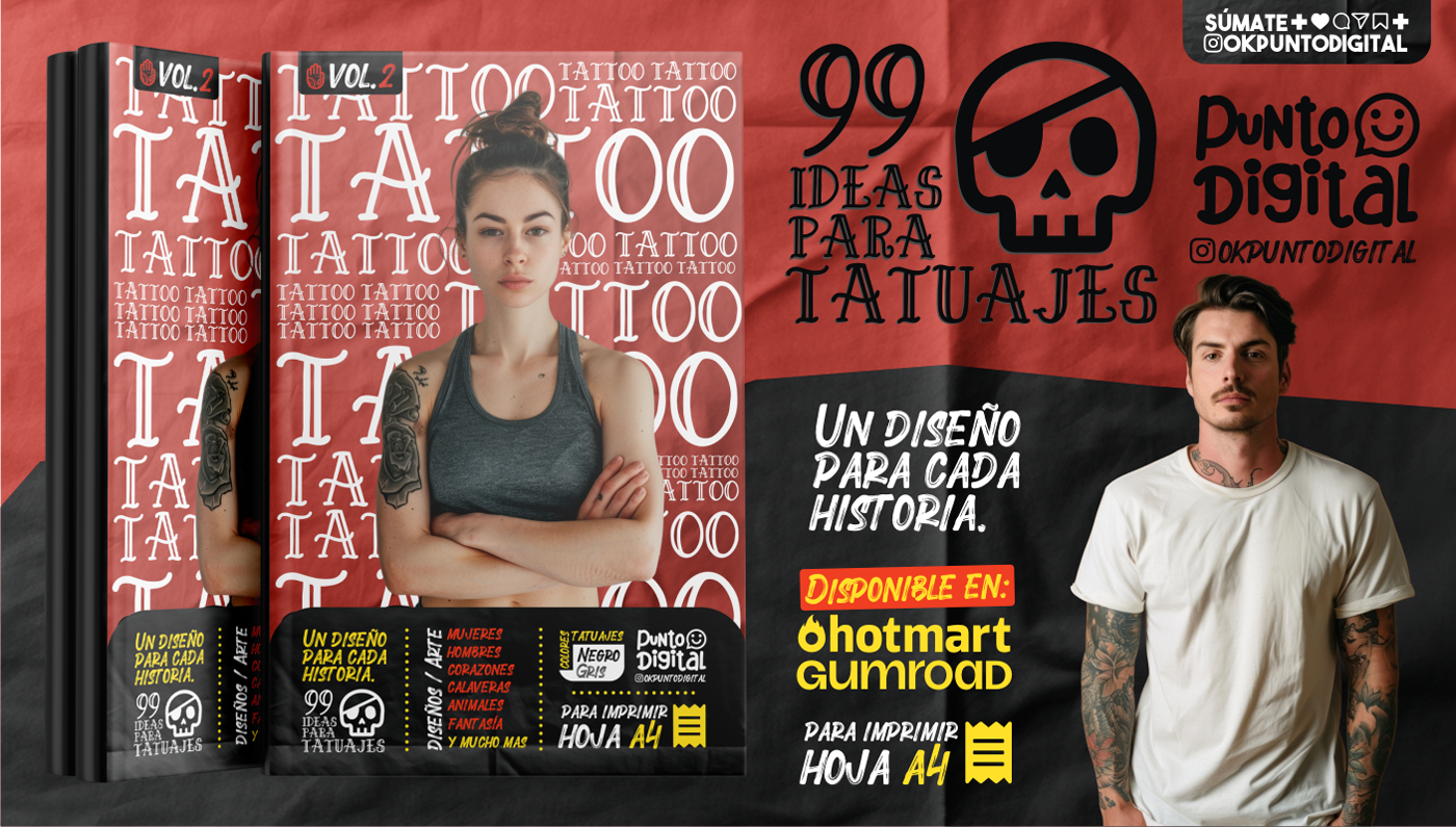 Adquiere ahora mismo nuestro ebook "99 Ideas Para Tatuajes (Vol 2)" y comienza a diseñar el tatuaje de tus sueños.